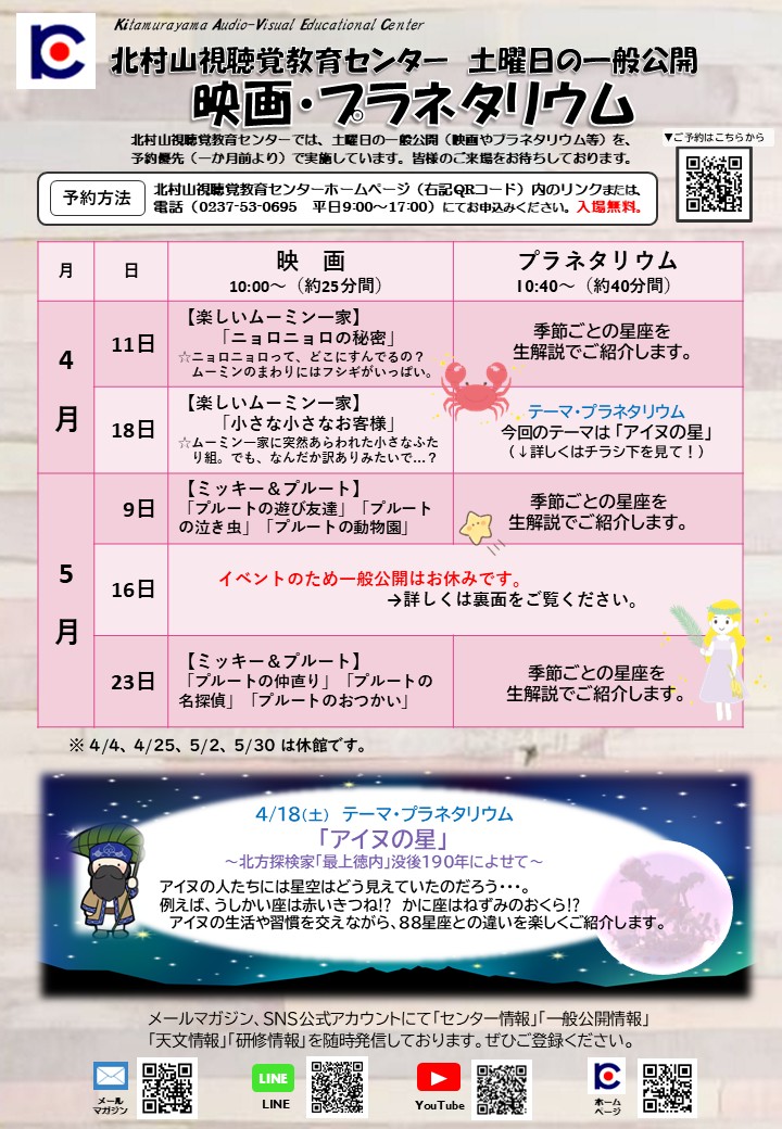 予約ページはこちら:4月18日テーマ・プラネタリウム予約ページ(予約受付は3月18日から)